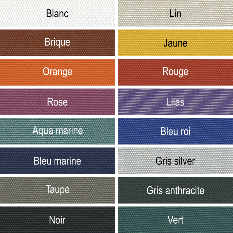 Le tissu acrylique de 310 g/m² est teint dans la masse avec une finition imprégnée qui lui apporte une grande résistance aux taches, augmente la stabilité de la couleur et prolonge la durée de vie de la toile.