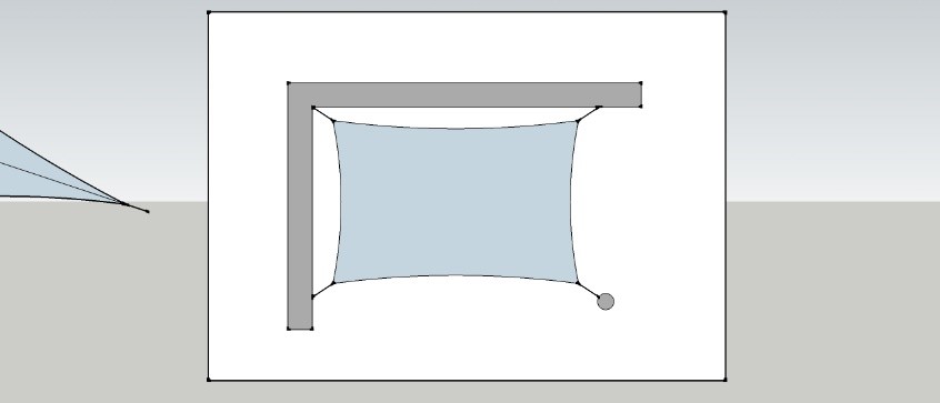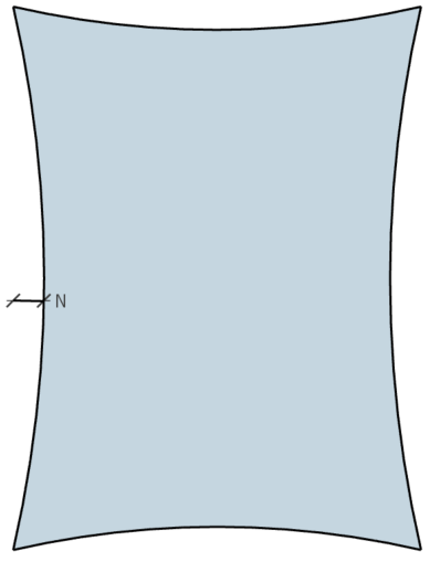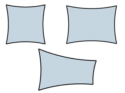 Négatif de 2 à 3 % Les bords de nos toiles d'ombrage présentent une courbure négative (incurvée vers l'intérieur) pour éviter la formation de plis lors de la mise sous tension. Ce négatif est d’environ 5% de la longueur du côté de la toile, en fonction de la forme et des dimensions des voiles d'ombrage. |